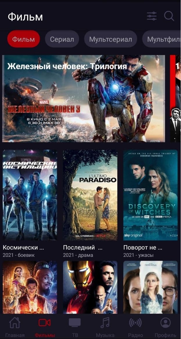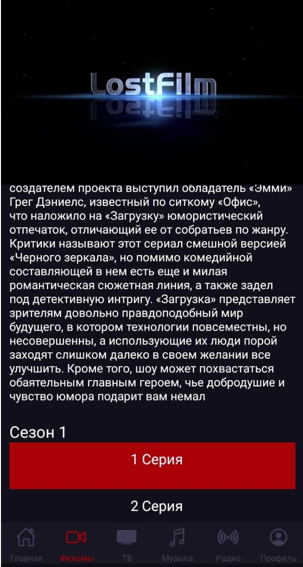 , новые и популярные фильмы. Дизайн интерфейса разработан под единый стиль компании